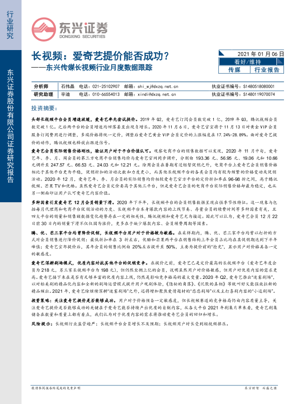 【东兴证券】【20210106】长视频:爱奇艺提价能否成功?-12页