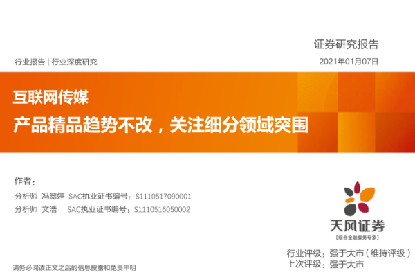 【天风证券】【20210107】互联网传媒行业:产品精品趋势不改,关注细分领域突围-30页