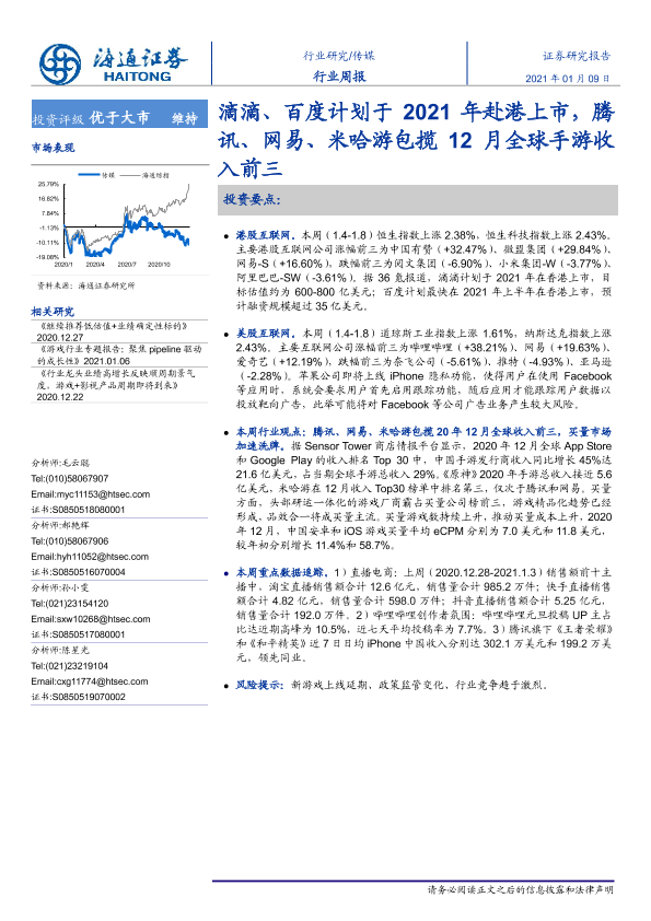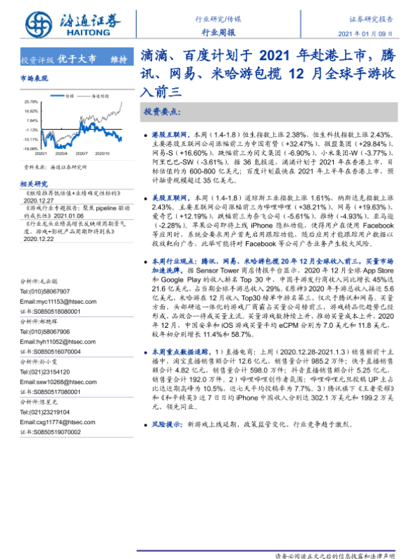 【海通证券】【20210109】20210109-海通证券-传媒行业周报:滴滴、百度计划于2021年赴港上市,腾讯、网易、米哈游包揽12月全球手游收入前三-14页