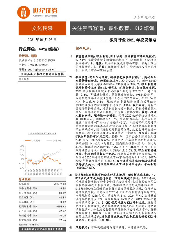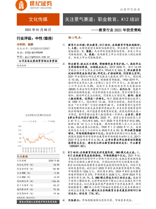 【世纪证券】【20210106】教育行业2021年投资策略:关注景气赛道:职业教育、K12培训-27页