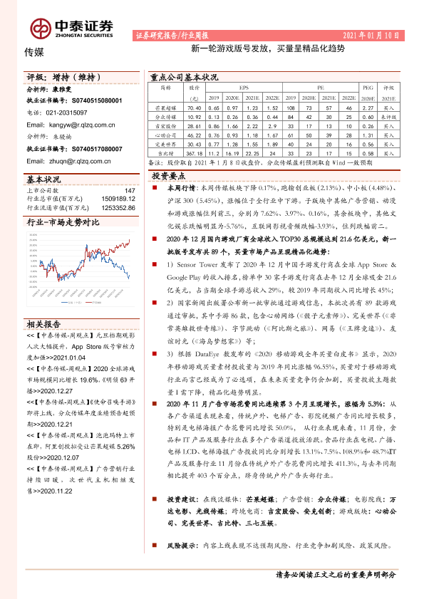 【中泰证券】【20210110】20210110-中泰证券-传媒行业周报:新一轮游戏版号发放,买量呈精品化趋势-12页