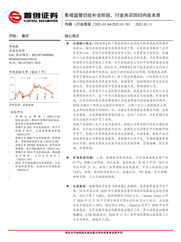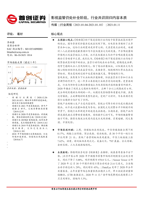【首创证券】【20210111】20210111-首创证券-传媒行业周报:影视监管仍处补全阶段,行业共识回归内容本质-11页