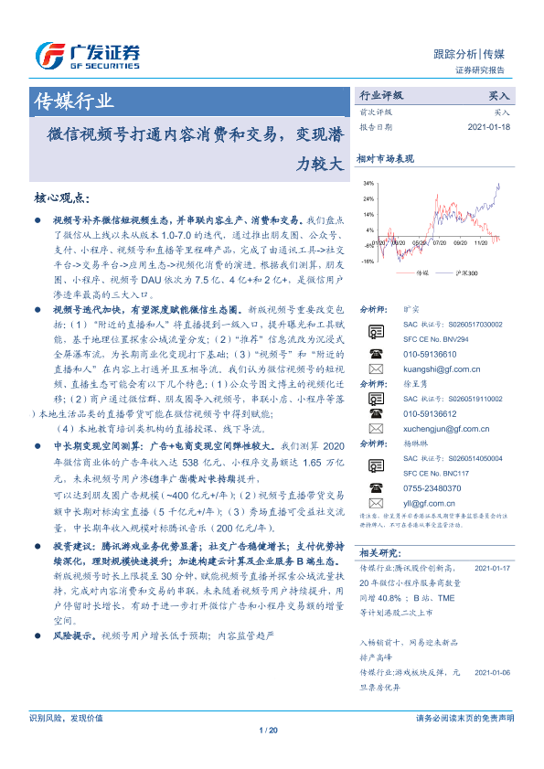 【广发证券】【20210118】微信视频号打通内容消费和交易,变现潜力较大-20页