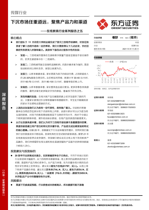 【东方证券】【20210120】在线教育行业系列报告之五:下沉市场任重道远,聚焦产品力和渠道-15页