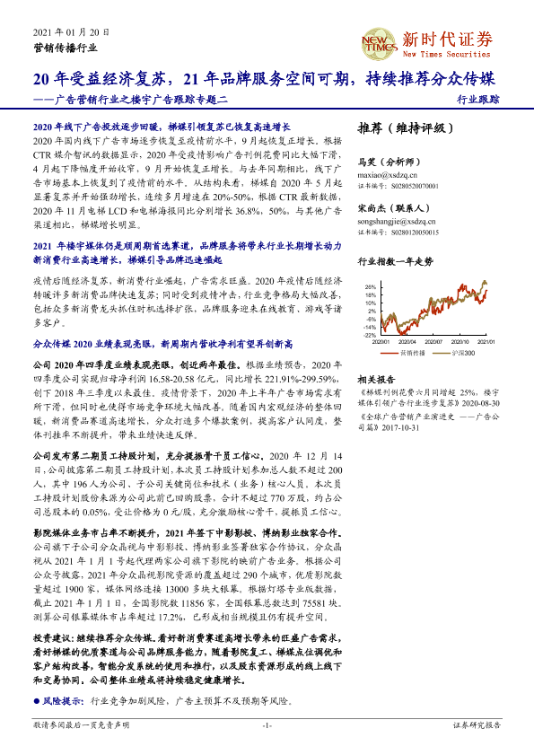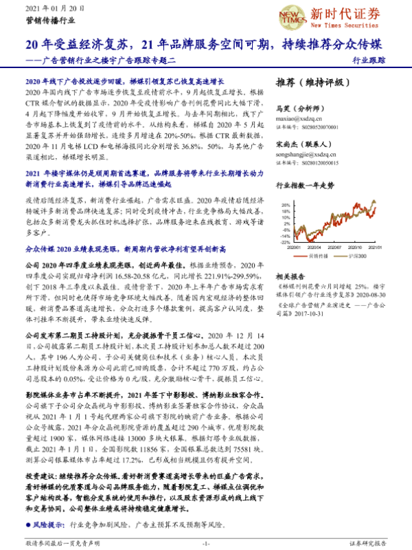 【新时代证券】【20210120】广告营销行业之楼宇广告跟踪专题二:20年受益经济复苏,21年品牌服务空间可期,持续推荐分众传媒-10页