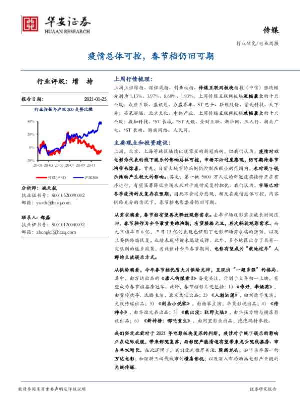 【华安证券】【20210125】20210125-华安证券-传媒行业周报:疫情总体可控,春节档仍旧可期-19页