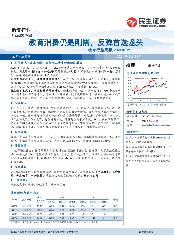 【民生证券】【20210125】教育消费仍是刚需,反弹首选龙头—教育行业周报 20210125-12页