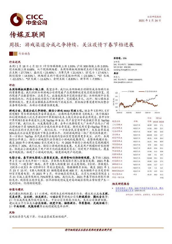 【中金公司】【20210124】传媒互联网行业周报:游戏渠道分成之争持续,关注疫情下春节档进展-19页