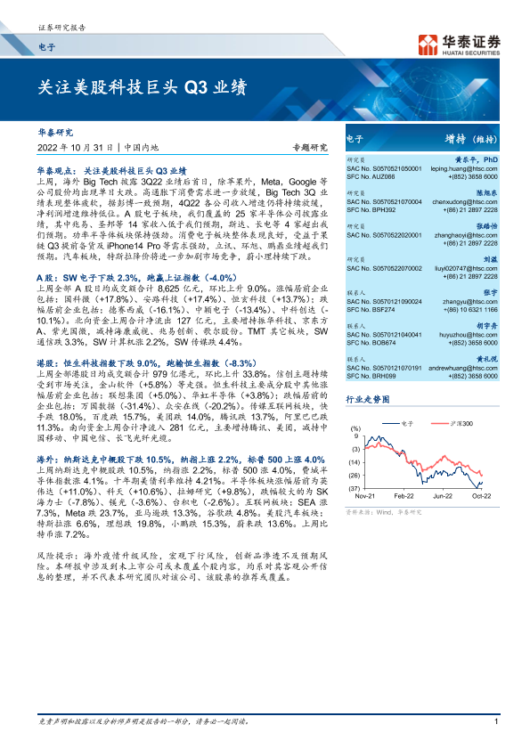 【华泰证券】【20221031】电子行业专题研究:关注美股科技巨头Q3业绩-27页