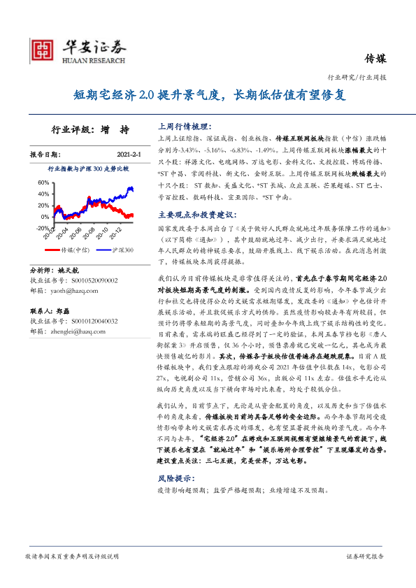 【华安证券】【20210201】20210201-华安证券-传媒行业周报:短期宅经济2.0提升景气度,长期低估值有望修复-20页