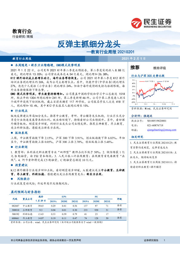 【民生证券】【20210201】反弹主抓细分龙头—教育行业周报 20210201-12页