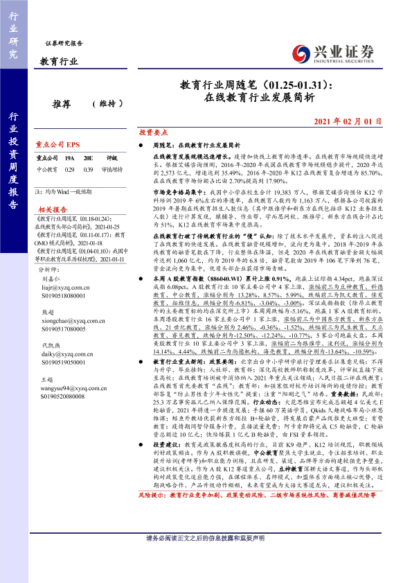 【兴业证券】【20210201】教育行业周随笔(01.25-01.31): 在线教育行业发展简析-17页
