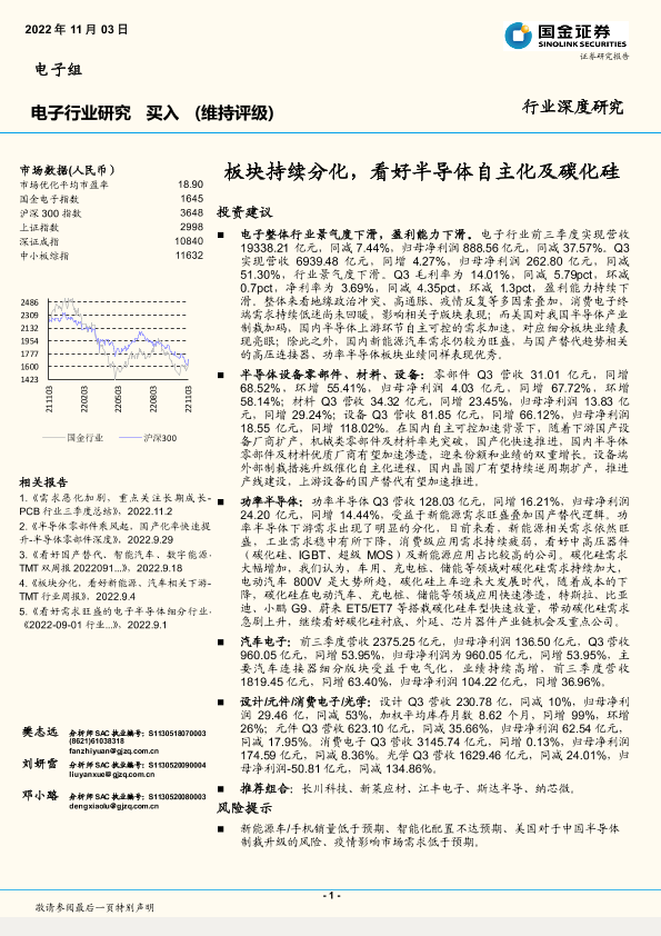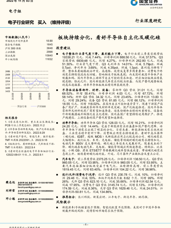 【国金证券】【20221103】电子行业深度研究:板块持续分化,看好半导体自主化及碳化硅-32页