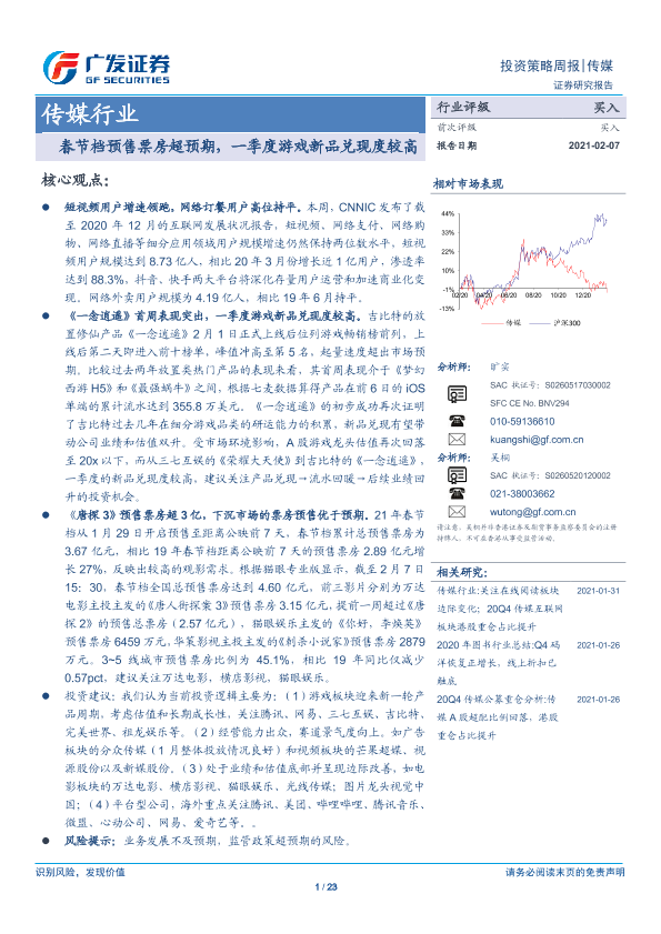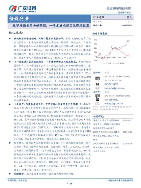 【广发证券】【20210207】20210207-广发证券-传媒行业投资策略周报:春节档预售票房超预期,一季度游戏新品兑现度较高-23页