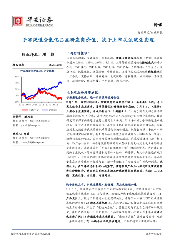 【华安证券】【20210208】20210208-华安证券-传媒行业周报:手游渠道分散化凸显研发商价值,快手上市关注流量变现-19页