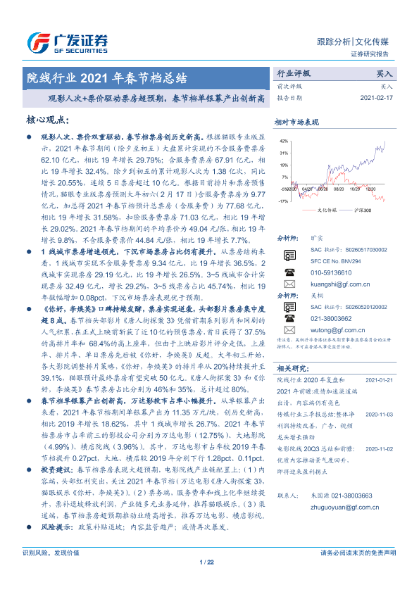 【广发证券】【20210217】院线行业2021年春节档总结:观影人次+票价驱动票房超预期,春节档单银幕产出创新高-22页