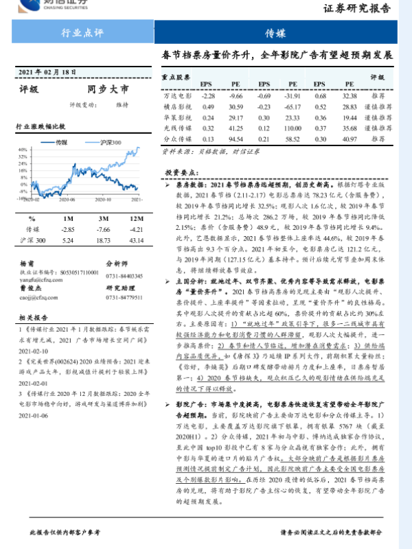 【财信证券】【20210218】财信证券-传媒行业点评:春节档票房量价齐升,全年影院广告有望超预期发展-3页