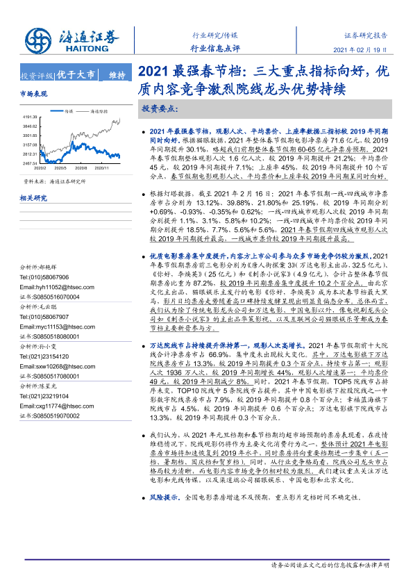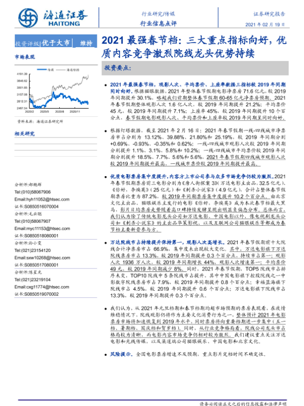 【海通证券】【20210219】2021最强春节档:三大重点指标向好,优质内容竞争激烈院线龙头优势持续-5页