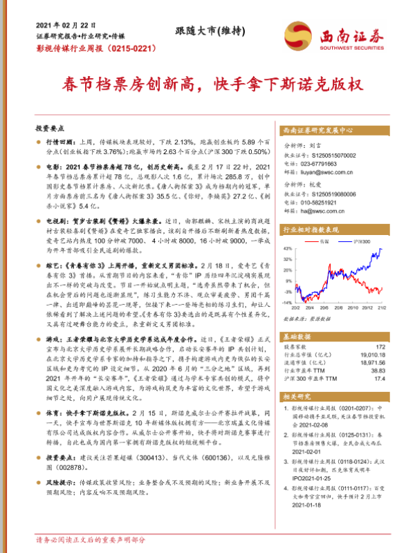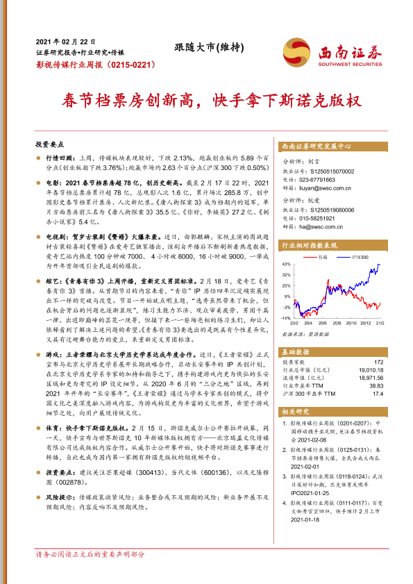 【西南证券】【20210222】20210222-西南证券-影视传媒行业周报:春节档票房创新高,快手拿下斯诺克版权-21页