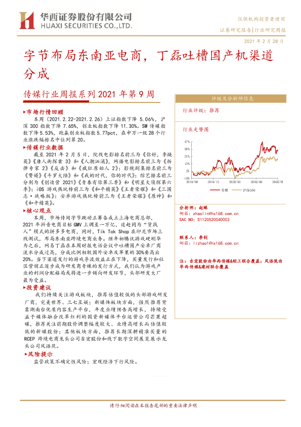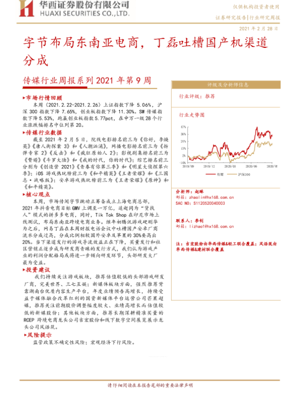 【华西证券】【20210228】20210228-华西证券-传媒行业周报系列2021年第9周:字节布局东南亚电商,丁磊吐槽国产机渠道分成-15页