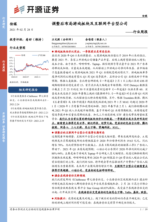 【开源证券】【20210228】20210228-开源证券-传媒行业周报:调整后布局游戏板块及互联网平台型公司-19页