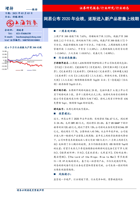 【上海证券】【20210303】网易公布2020年业绩,逐渐进入新产品密集上线期-9页