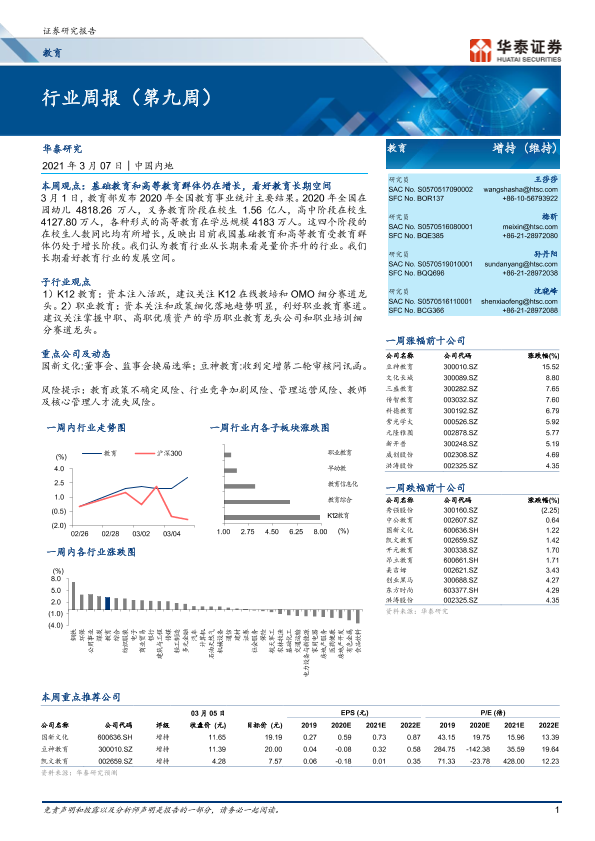 【华泰证券】【20210307】教育行业周报(第九周)-13页