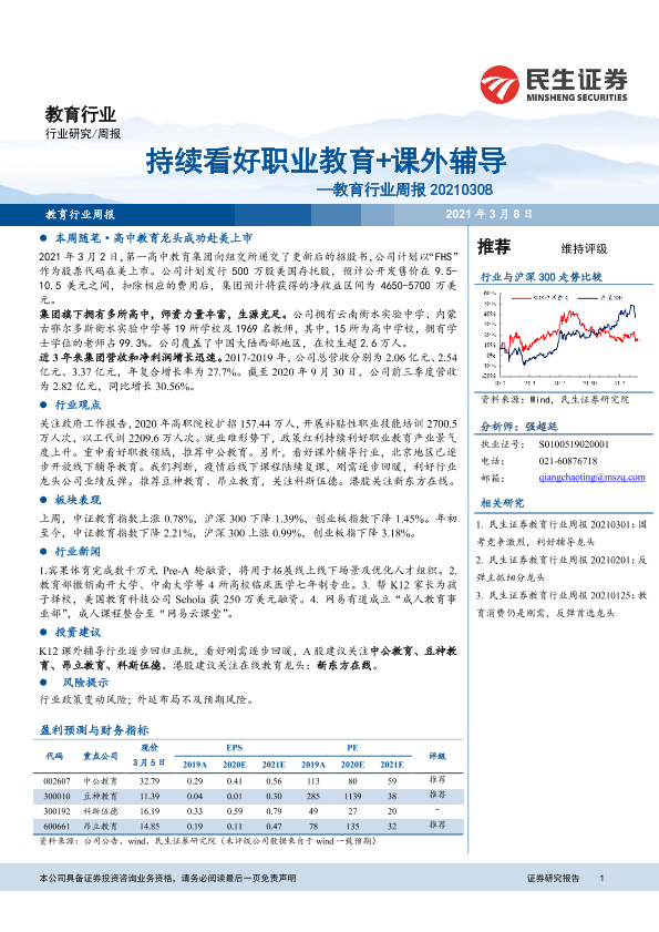 【民生证券】【20210308】20210308-民生证券-教育行业周报:持续看好职业教育+课外辅导-12页