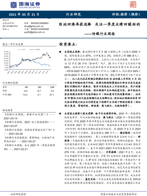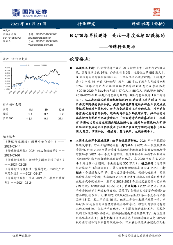 【国海证券】【20210321】B站回港再获追捧关注一季度业绩回暖标的-19页