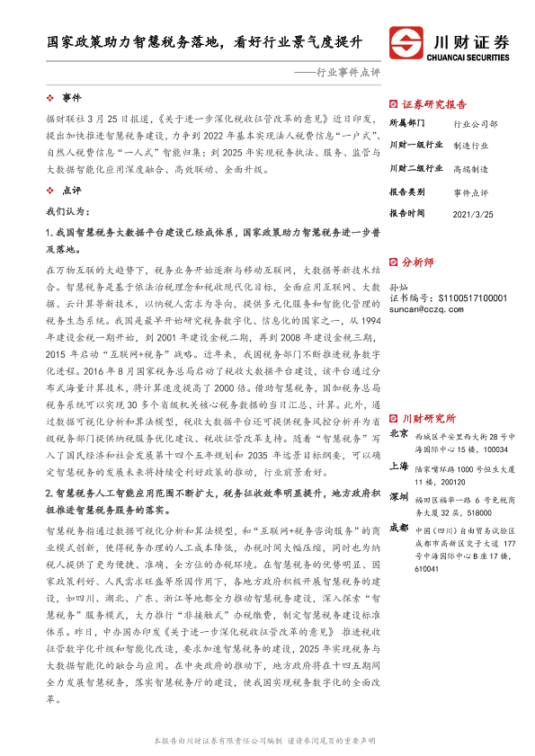 【川财证券】【20210325】国家政策助力智慧税务落地,看好行业景气度提升-3页