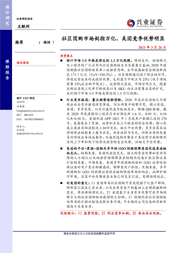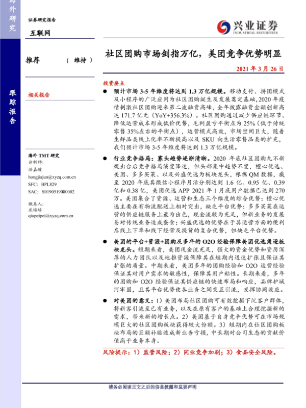 【兴业证券】【20210326】社区团购市场剑指万亿,美团竞争优势明显-13页