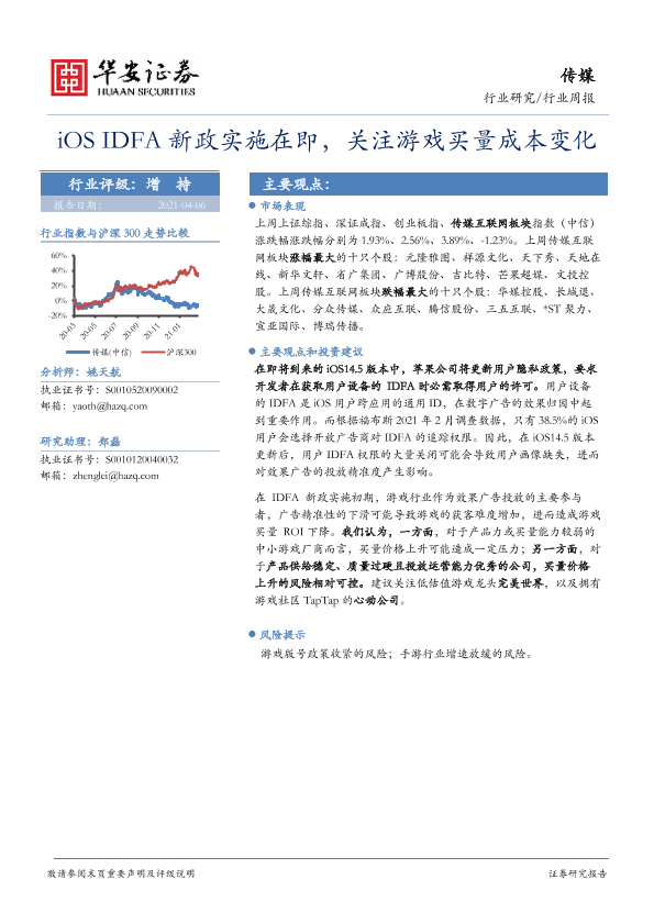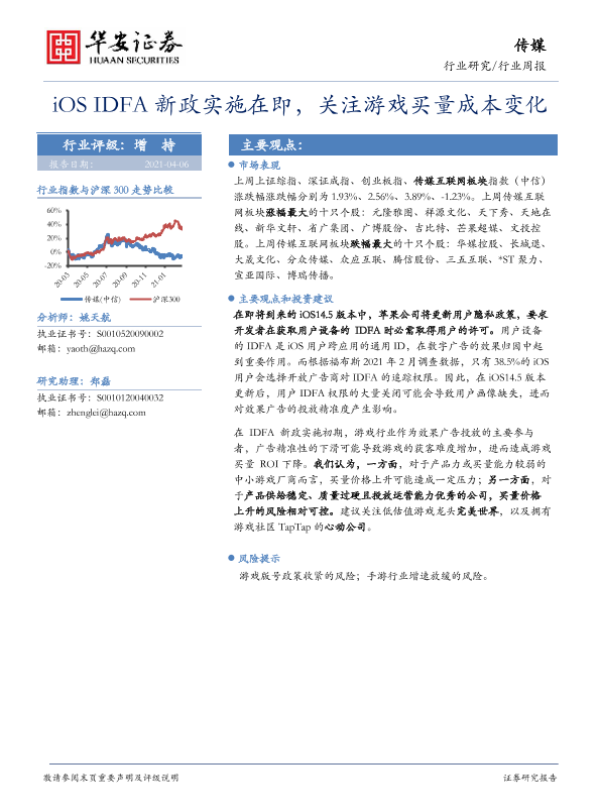 【华安证券】【20210406】20210406-华安证券-传媒行业周报:iOS IDFA新政实施在即,关注游戏买量成本变化-18页