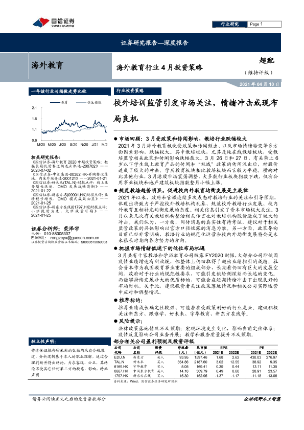 【国信证券】【20210410】海外教育行业4月投资策略:校外培训监管引发市场关注,情绪冲击或现布局良机-16页