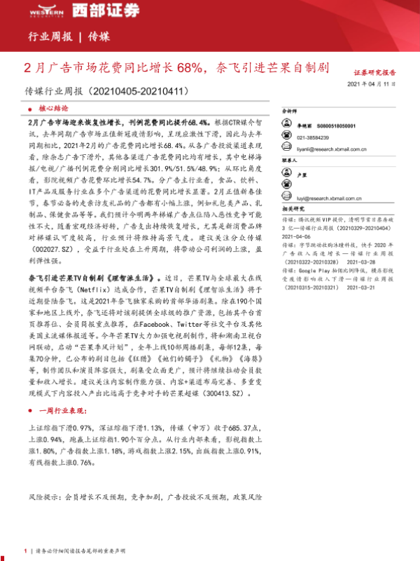 【西部证券】【20210411】2月广告市场花费同比增长68%,奈飞引进芒果自制剧-14页