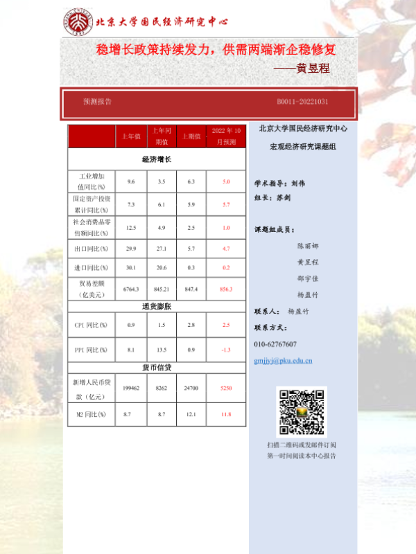 【北京大学国民经济研究中心】【20221031】稳增长政策持续发力,供需两端渐企稳修复-14页