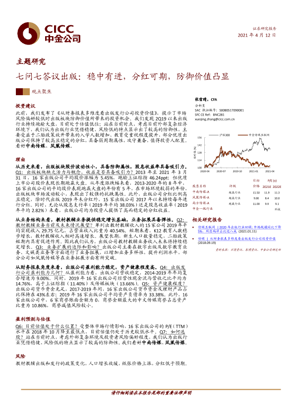 【中金公司】【20210412】七问七答议出版:稳中有进,分红可期,防御价值凸显-24页