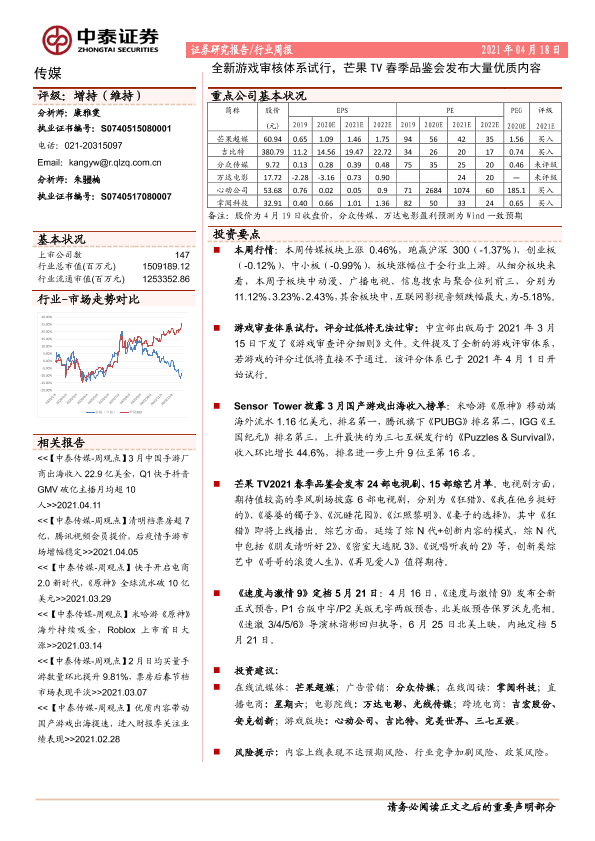 【中泰证券】【20210418】20210418-中泰证券-传媒行业周报:全新游戏审核体系试行,芒果TV春季品鉴会发布大量优质内容-15页