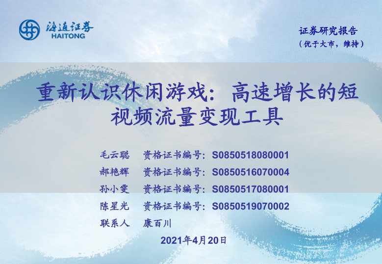 【海通证券】【20210420】重新认识休闲游戏:高速增长的短视频流量变现工具-25页
