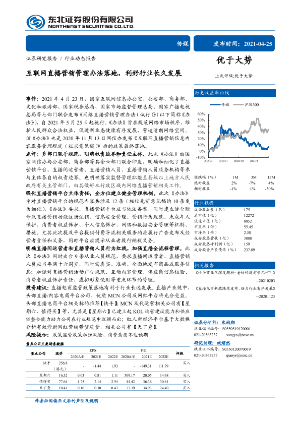 【东北证券】【20210425】互联网直播营销管理办法落地,利好行业长久发展-3页