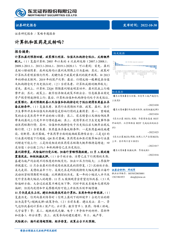 【东北证券】【20221030】策略专题报告:计算机和医药是反转吗?-31页