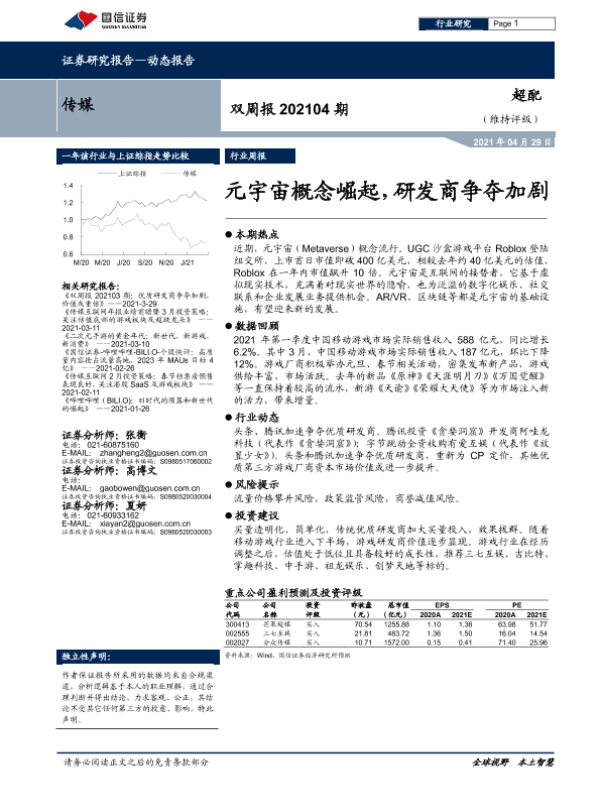 【国信证券】【20210429】传媒行业双周报202104期:元宇宙概念崛起,研发商争夺加剧-7页