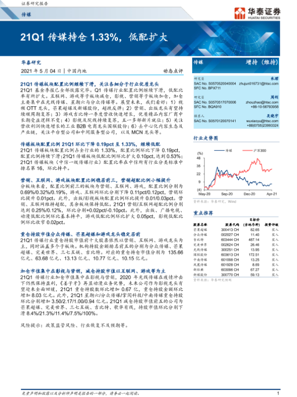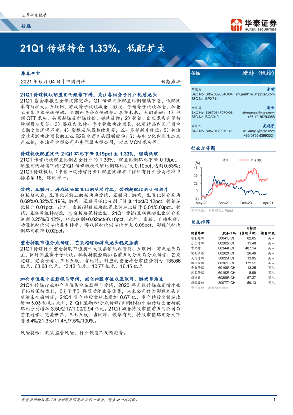 【华泰证券】【20210504】21Q1传媒持仓1.33%,低配扩大-12页