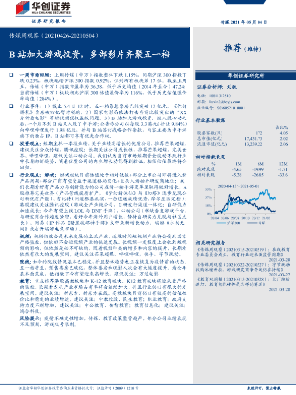 【华创证券】【20210504】20210504-华创证券-传媒周观察:B站加大游戏投资,多部影片齐聚五一档-21页