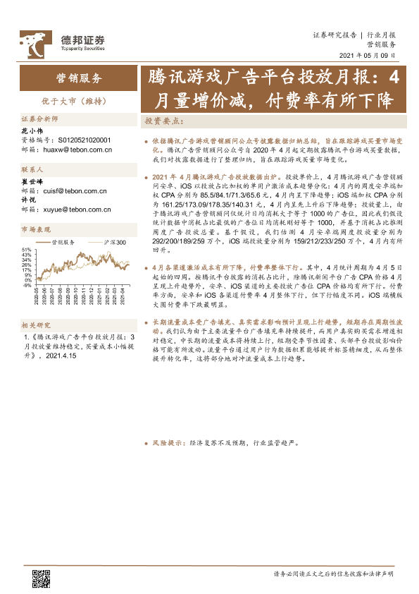 【德邦证券】【20210509】20210509-德邦证券-营销服务行业月报:腾讯游戏广告平台投放月报:4月量增价减,付费率有所下降-10页