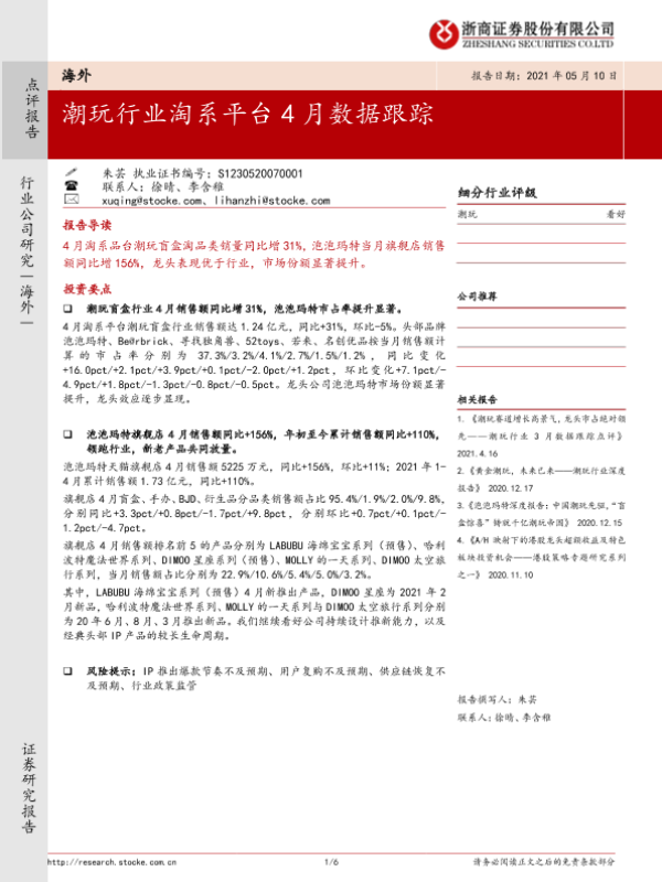 【浙商证券】【20210510】潮玩行业淘系平台4月数据跟踪-6页