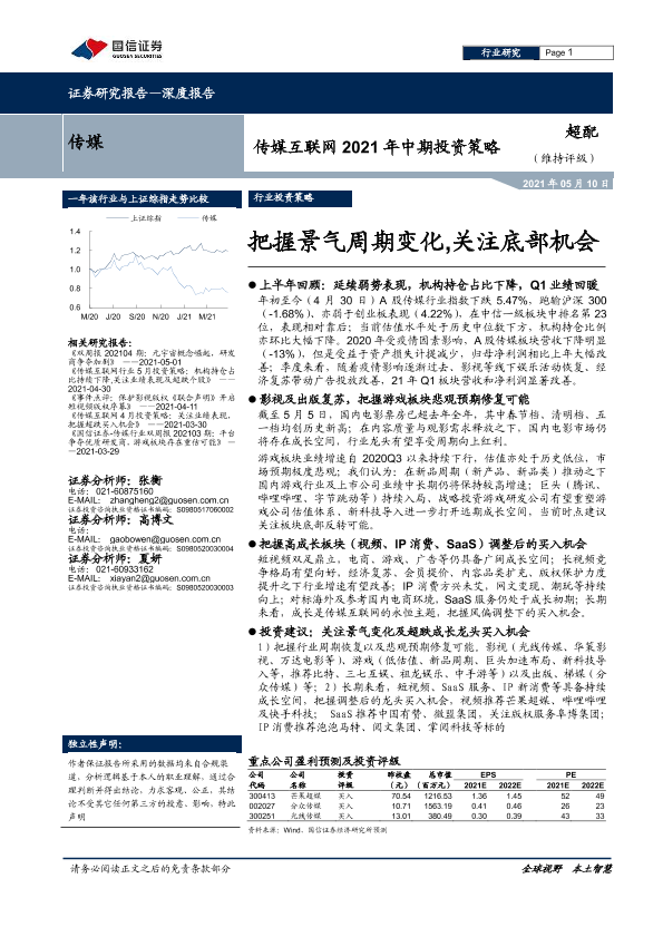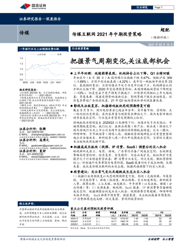 【国信证券】【20210510】传媒互联网2021年中期投资策略:把握景气周期变化,关注底部机会-31页