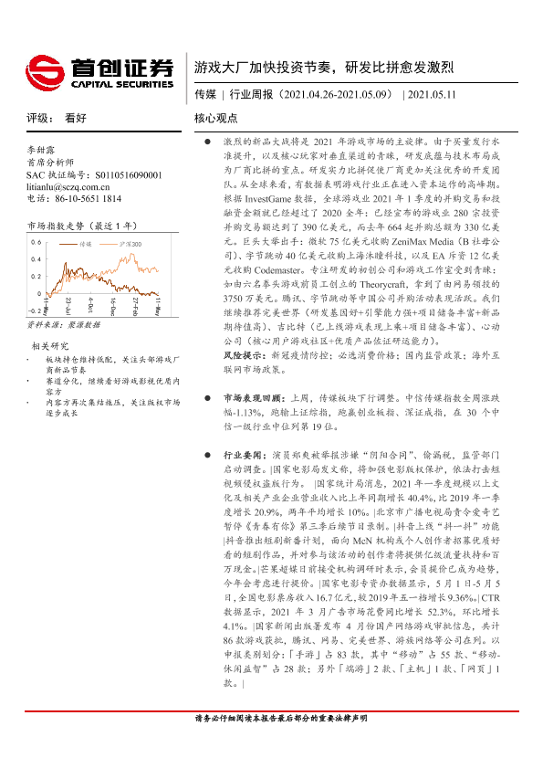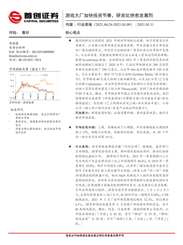 【首创证券】【20210511】游戏大厂加快投资节奏,研发比拼愈发激烈-11页