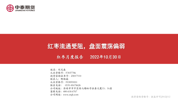【中泰期货】【20221030】红枣月度报告:红枣流通受阻,盘面震荡偏弱-18页