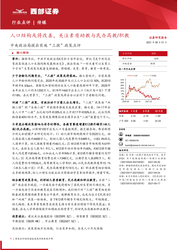 【西部证券】【20210601】传媒行业中央政治局提出实施“三孩”政策点评:人口结构或将改善,关注素质幼教与民办高教/职教-2页