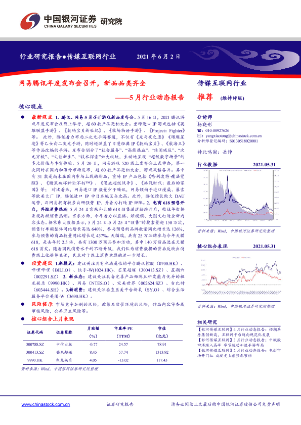 【银河证券】【20210602】20210602-中国银河-传媒互联网行业:5月行业动态报告:网易腾讯年度发布会召开,新品品类齐全-21页